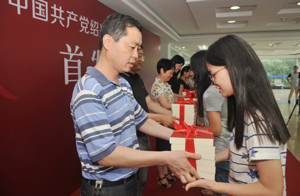 本书主编、绍兴市委党史研究室副主任赵玲华同志介绍了本书的特点及绍兴党史的研究情况,本书全面记载了1949年5月绍兴解放至1978年12月党的十一届三中全会召开的历史,是我市地方历史研究的一项重大成果。该书编写工作历时十余年,查阅了数百万字的档案资料,数易其稿。在编纂中,编者坚持运用辩证唯物主义和历史唯物主义的观点,忠实记录绍兴各级党组织加强自身建设、经受各种考验而不断发展壮大的光辉历程,总结了我市在社会主义革命和建设时期正反两方面的经验教训,讴歌了共产党人和广大人民群众矢志不渝建设社会主义的崇高精神。学生党员体表梅雪同学作了发言,宣传部长胡保卫同志致词祝贺,并指出,地方党史的研究和本书发行为广大党员在“两学一做”学习教育中提供了学习党史的好教材,希望广大党员认真学习党史,加强对党史,尤其是具有绍兴本土特色的绍兴党史的学习和了解,增加党性修养。最后给党员进行了赠书仪式。