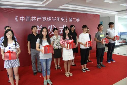 为纪念中国共产党建党95周年,2016年6月27日下午,学院总支与绍兴市委党史研究室在南山校区财贞楼大厅内隆重举行《中国共产党绍兴历史》第二卷(1949-1978)首发式。绍兴市委党史研究室领导、学校党委宣传部、组织部领导及学院总支书记、副书记、委员等共一百多名党员和建党积极分子参加了首发式,首发式由学院书记主持。