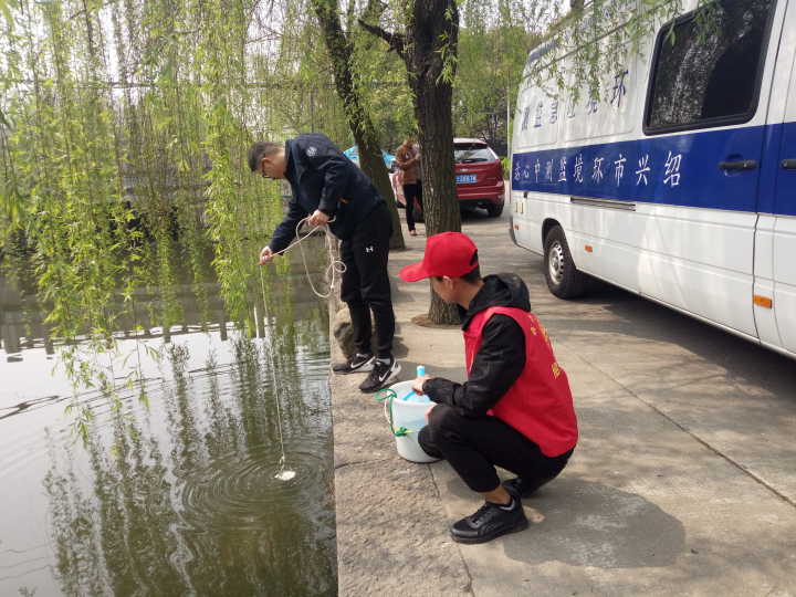 启动仪式现场,这只队伍格外引人注目,成为一道靓丽的风景线。他们是由环保部门监测中心专业人员与绍兴文理生命科学学院志愿者组成。启动仪式结束,行动号角吹响。这支精锐队伍立即分组奔赴现场,开展督导、宣传、河水采样活动。
