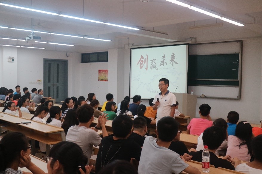 老师从四个方面展开讨论,一是我的一生、二是我的专业、三是我的校友、四是我的行动。大学是一个相对自由的时代,不像高中一样每天重复单调的生活,大学生活是多姿多彩的,即便如此,我们仍需做到一个学生应做的——学习。老师向同学们介绍了许多考上重点院校研究生的学长学姐们,他们仍能在大学里不辞辛劳,坚持学习,那么他们的未来注定更加精彩纷呈,潘书记希望同学们在大学里勤奋学习,为实现自己的人生目标打基础。