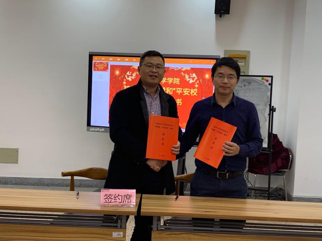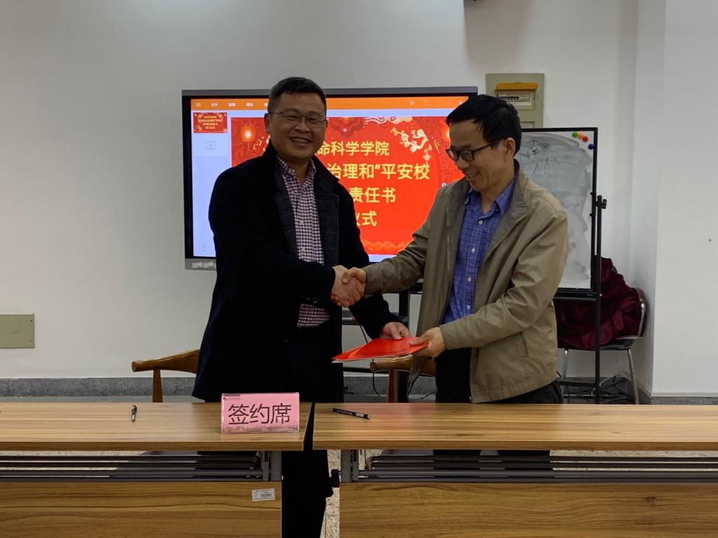 随后,袁油迪书记与全体教职工代表签订“生命科学学院校园综合治理和‘平安校园’建设责任书”。