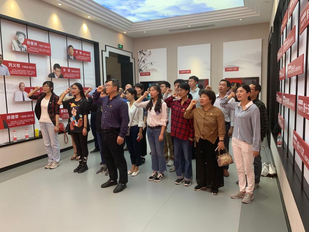 在参观结束前,全体党员还在庄严的党旗前重温入党誓词,不忘初心,牢记使命。