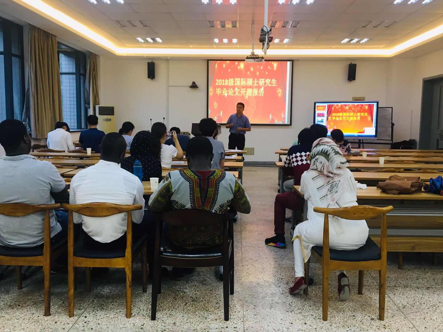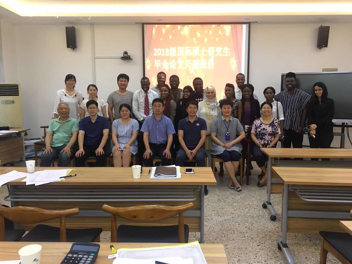 2019年6月19日下午,2018级国际生开题答辩会在综合楼B208举行,出席会议有专家评委小组成员,负责管理研究生工作的学院领导,研究生导师以及2018年春季和秋季入学的国际留学生。