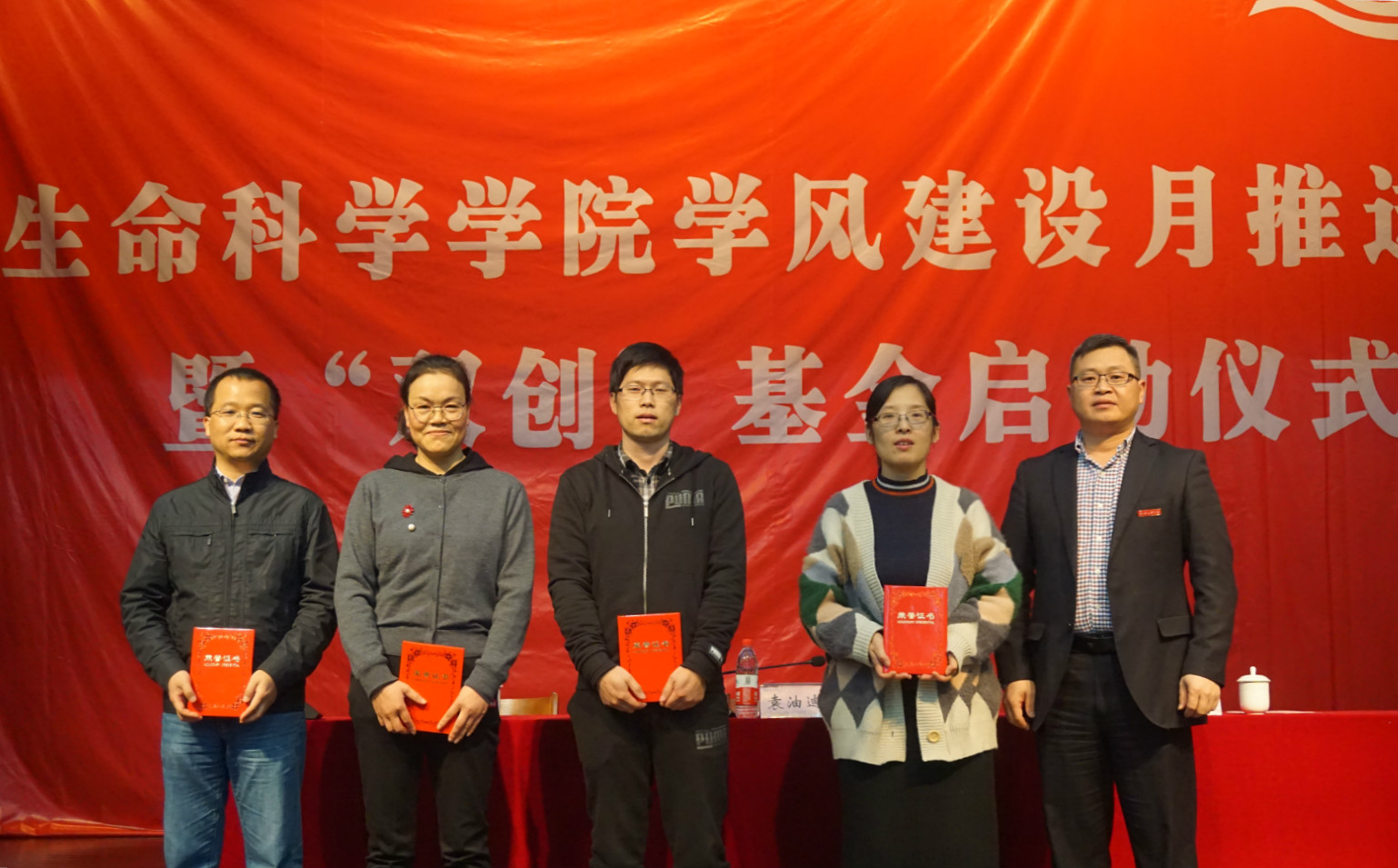 为进一步培育优良的校风、学风,传承“执着、求知、有为”的生科学风,11月14日晚,生命科学学院2019年学风建设推进会暨“双创”基金启动仪式在河东月明楼隆重举行。学院党委书记袁油迪,副院长罗文,党委副书记刘志欣,各专业主任、班主任及优秀校友代表出席。