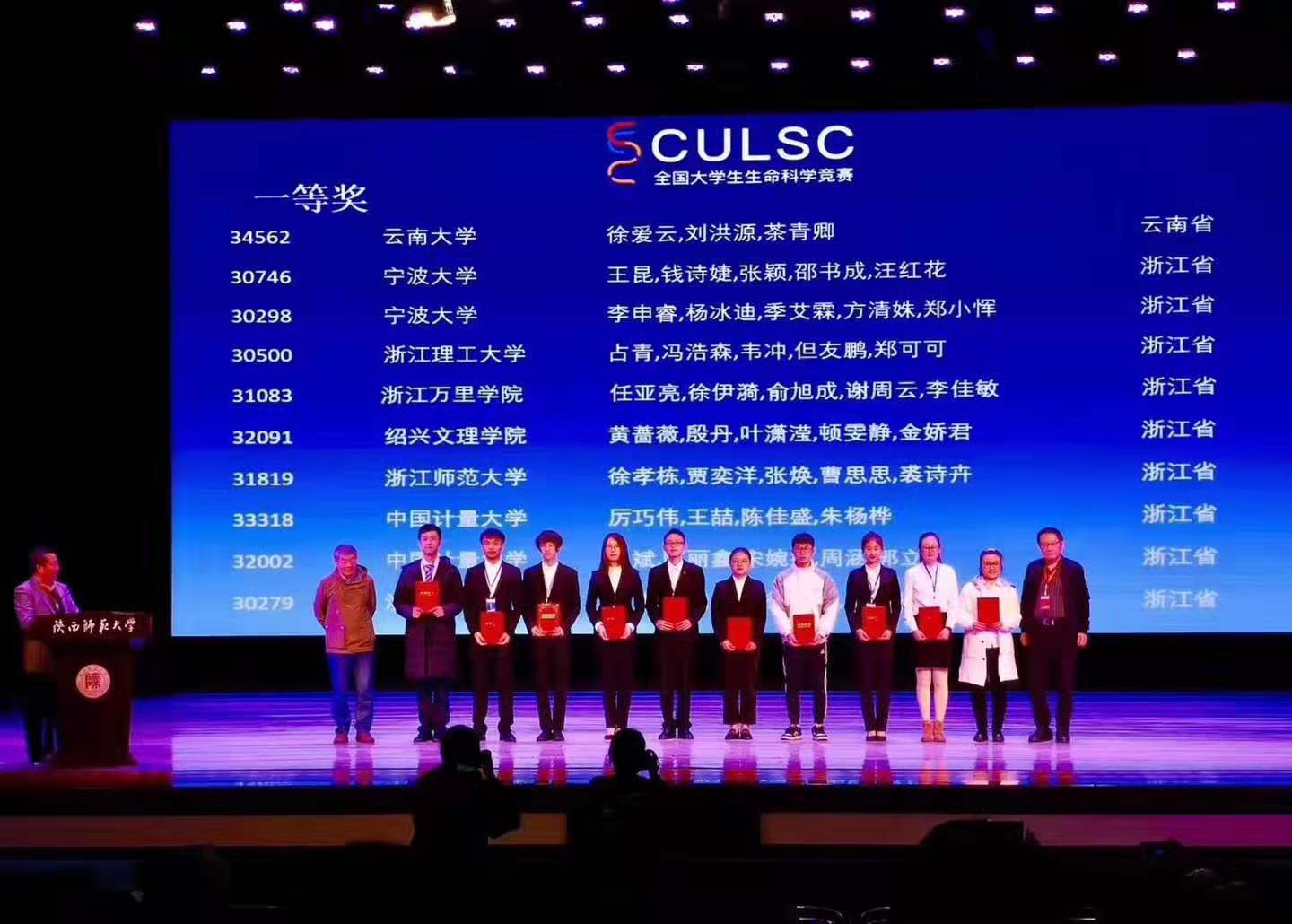 本次全国大学生生命科学竞赛共有来自全国的411所高校、4797支参赛队伍参加,经过全国各省赛专家评分及竞赛评审委员会和执委会审定,有156支队伍参加决赛答辩,共评出一等奖60项。浙江省共有17只队伍进入决赛答辩,获得一等奖9项。