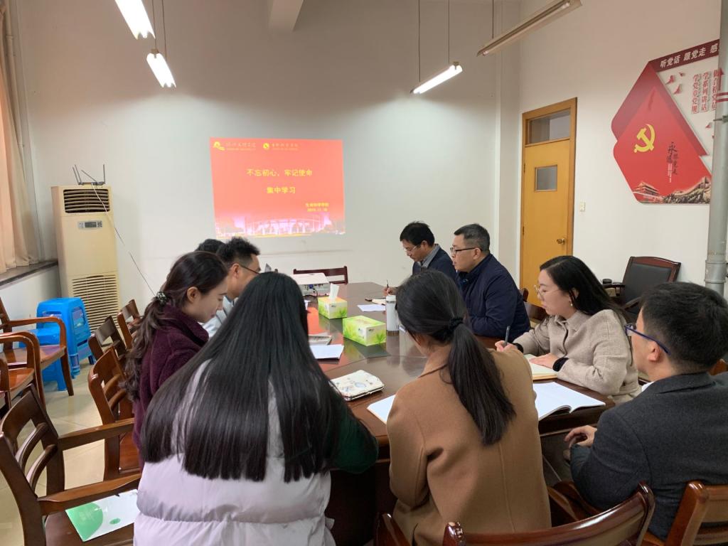 11月18日下午,生命科学学院召开党委理论学习中心组学习会,传达学习党的十九届四中全会精神。