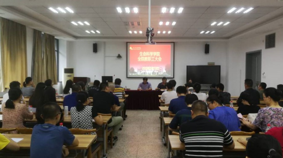 9月10日下午,生命科学学院在综合楼会议室召开全院教职工大会。会议由学院党委书记袁油迪主持。