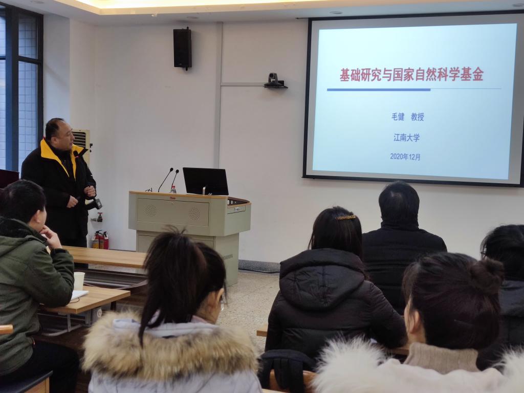 毛健教授分析了我国科技基础研究的基本特征和高校科研工作者面临的新形势,他指出,目前国家科技政策出现新风向,高度重视基础研究,强调自主创新、重点跨越、支撑发展、引领未来,是我国地方高校科技创新工作面临的瓶颈和挑战。随后,毛健教授介绍了国家自然科学基金的战略定位,资助结构和主要项目等内容,围绕国家科学基金申请书的撰写,从基金撰写的选题技巧,课题的创新性,撰写应注意的细节,做了详细说明。
