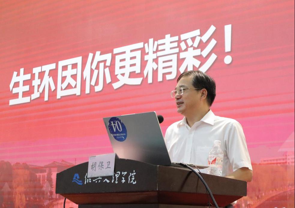 胡保卫院长为同学们带来“院长第一课”。胡院长代表学院全体师生对2024级新生的到来表示衷心的祝贺和热烈的欢迎。他向同学们介绍了学院的建设发展情况、学科专业设置、师资力量和学院学生在考研、学生科研和竞赛、学校体育赛事等方面取得的成绩,对学院在人才培养方面取得的成就给予了高度评价,并向新生提出四点期许:一是希望同学们要紧跟时代步伐,树立远大理想和目标,制定明确的职业规划;二是希望同学们要保持对专业的热爱,勤奋学习,拓宽知识面,追求卓越;三是希望同学们积极参与各类校园活动,不断提升个人修养,德智体美劳全面发展;四是希望同学们学会独立思考,创新思维能力,增强实践能力。最后,胡院长表达了对学院未来发展的坚定信心,鼓励同学们勇于探索,追求真理,用乐观的态度去面对挑战,用积极的行动去迎接变化,为学院的繁荣发展贡献自己的力量。