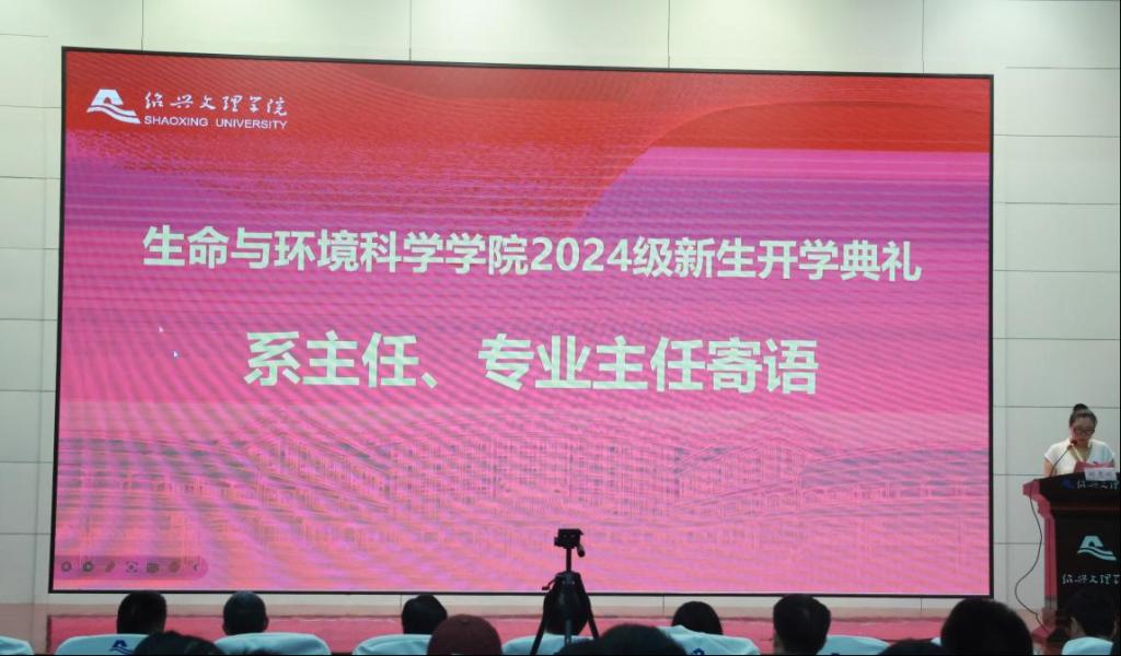 9月13日晚上,生命与环境科学学院2024级新生开学典礼在铁城科教馆隆重举行。学院党政班子、各系主任和专业主任、党支部书记、各科室负责人、教师代表、新生班主任、辅导员和全体2024级新生参加开学典礼。典礼由学院党委副书记刘志欣主持。